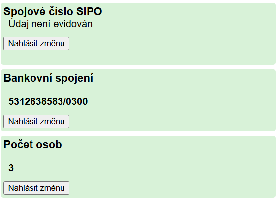 Po kliknutí na Nahlásit změnu se otevře formulář, ve kterém uživatel velmi jednoduše zadá nový údaj a od kdy je platný.