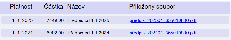 Ve spodní části tabulky jsou uvedeny budoucí předpisy a případně i platby, pokud již byly uskutečněny.