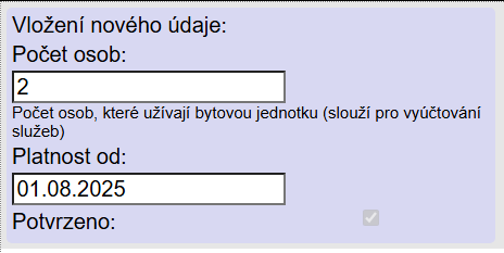 Na tomto místě můžeme poznamenat, že tyto údaje lze rozdělit do dvou kategorií. První jsou údaje citlivé, které vyžadují vyšší úroveň bezpečnosti. Tyto údaje se při nahlášení změny sice uloží, ale nejsou platné, dokud je správce nepotvrdí např. na základě podepsané žádosti o změnu, kterou TADY BYDLÍM vytvoří a uživatel si ji vytiskne a podepíše. Typickým příkladem je bankovní spojení. Kdyby totiž měl uživatel v systému zvoleno heslo, které se dá lehce odhadnout a nějaký útočník by se tak pod jeho uživatelským účtem dostal do systému a mohl v něm bankovní spojení svévolně změnit, mohl by se případný nejbližší přeplatek odeslat na cizí bankovní účet. TADY BYDLÍM proto záměrně komplikuje operace, které by mohly vést ke škodě. Údaje ze zbývající druhé kategorie jsou platné ihned po vložení a tyto údaje jsou rovněž přístupné nejen vlastníkovi bytu, ale i uživateli, který není vlastníkem.
